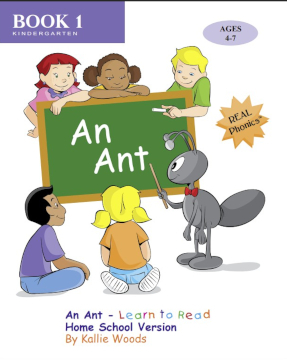 Learn to Read is a set of two books: Book 1: An Ant – Learn to Read Home School Version and Book 2: Learn to Read with Real Phonics Homeschool Version. Book 1 is recommended for ages four through seven, and Book 2 for ages five through seven. Homeschoolers will usually begin Book 1 in pre-kindergarten or kindergarten and finish both books before first grade. The approach used in these books is trademarked under the name REAL Phonics™.