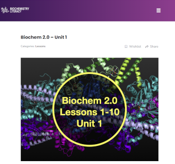 The Classic Lessons 1-24 were created a few years ago, but they needed more development, especially in the beginning lessons. Biochem 2.0, Unit 1 replaces lessons 1, 2, and 5 in the Classic Lessons 1-24, and students can skip those lessons. Forthcoming Biochem 2.0 units will eventually replace all Classic Lessons. For now, it’s best to think of this as a two-part course, with the Classic Lessons being a continuation of Biochem 2.0, Unit 1.